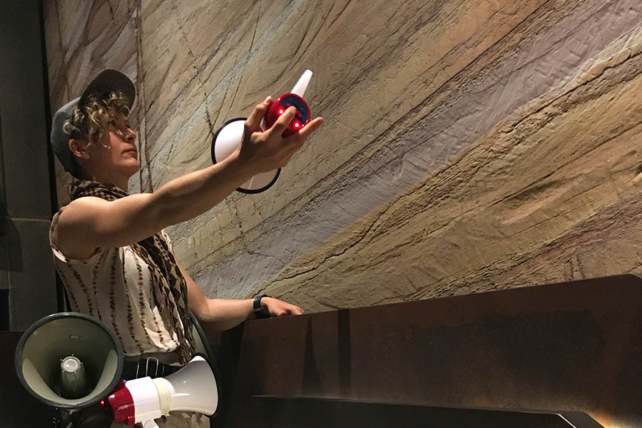 and captured via megaphones with embedded microphone, recording and replaying capacity. Performers would