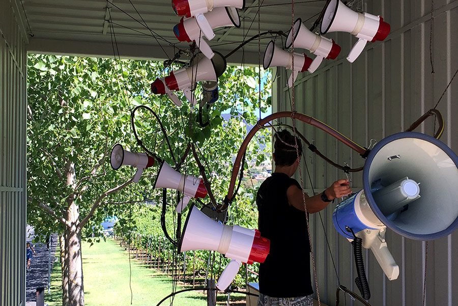 >>> 3 > The emergent sound score from the installation of multiple megaphones was live-streamed online, and