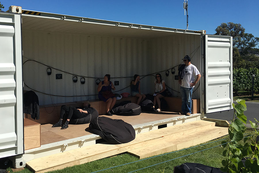 of megaphones with ever looping, overlaying and over-writing sounds, as festival-goers visited the container.